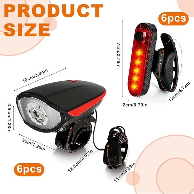 - Ample Sets: You will receive 6 sets of bright LED bike light tools, including 6 USB bike headlights and 6 back taillights, each one coming with a USB charging cable, providing a sufficient and practical for night riding