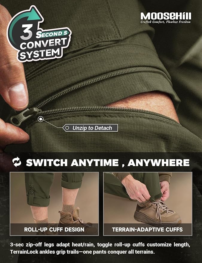 - Instant Convertible Convenience: Switch from pants to shorts in seconds! L/R zipper labels eliminate guesswork, while snag-free zippers ensure smooth transitions—ideal for sudden weather changes or trailside breaks.