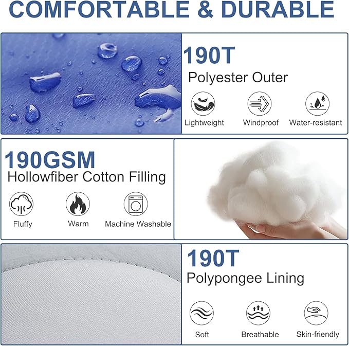 - Material: Outer Cover Material-premium 190T Anti-tearing Polyester Fabric which is waterproof and Breathable; Lining Material:190T polyester pongee