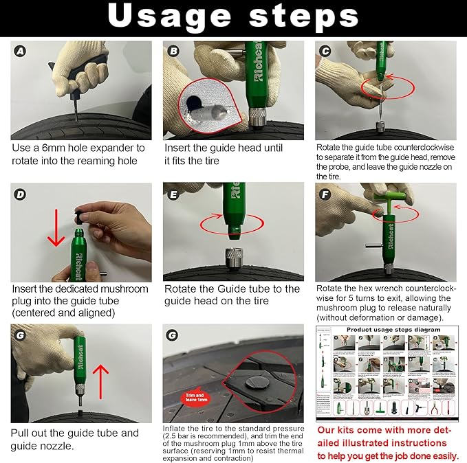 - 【Strong Sealing】In order to achieve better sealing, we designed the mushroom plugs to grab the tire from the inside like a rivet. This design ensures that the tire and the mushroom plugs fit tightly, even as one, to prevent air leakage, and it has been improved and tested for several years and is very reliable.