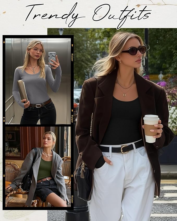 - Easy to Match: the women's scoop neck slim fit top is a very versatile addition to your wardrobe; Easy to pair with pants, jeans, skirts, leggings, boots and high heels etc; It can be worn alone or layered under sweaters, jackets, and coats, warm and not bloated