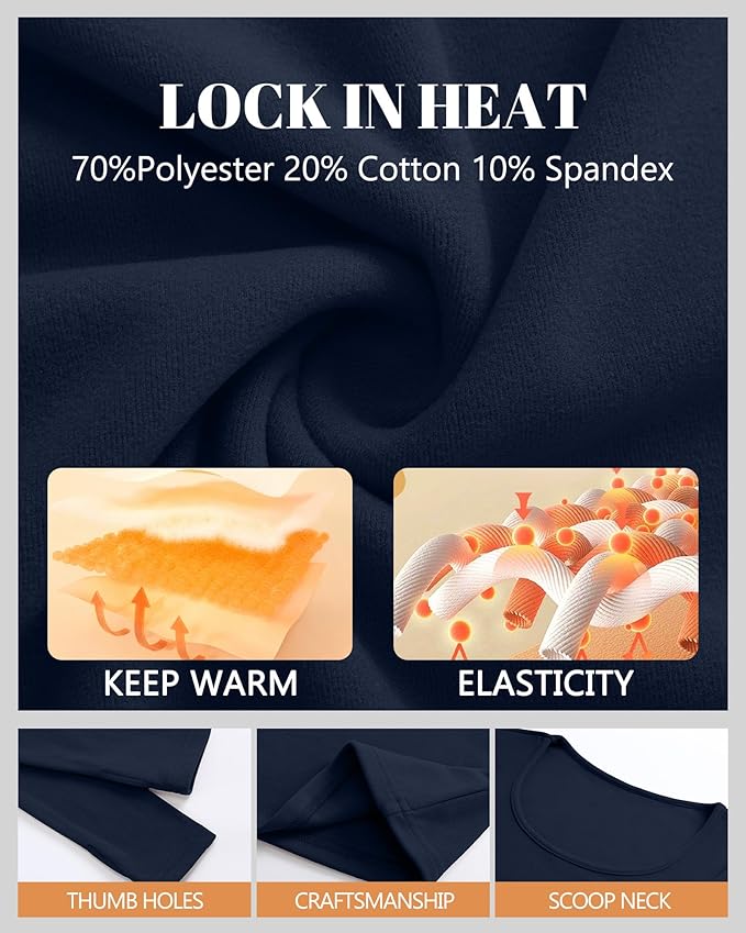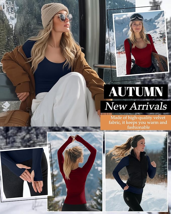 - Scoop Neck Design: this thermal undershirts for women feature a unique scoop neck, long sleeve, thumb holes, fleece lined, simple but stylish; Scoop neck and slim fit to highlights your figure, while it is easier to wear multiple layers of clothing in autumn and winter