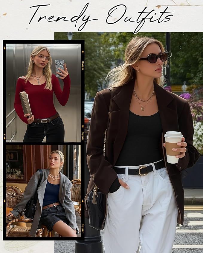 - Easy to Match: the women's scoop neck slim fit top is a very versatile addition to your wardrobe; Easy to pair with pants, jeans, skirts, leggings, boots and high heels etc; It can be worn alone or layered under sweaters, jackets, and coats, warm and not bloated