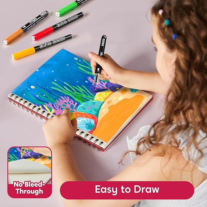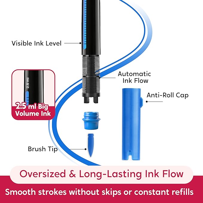 - Visible Ink & Easy-to-Use Design: Transparent barrel shows remaining ink levels at a glance. Caps open easily and stay tightly sealed—no spills, no drying out. Mess-free for both kids and adults.
