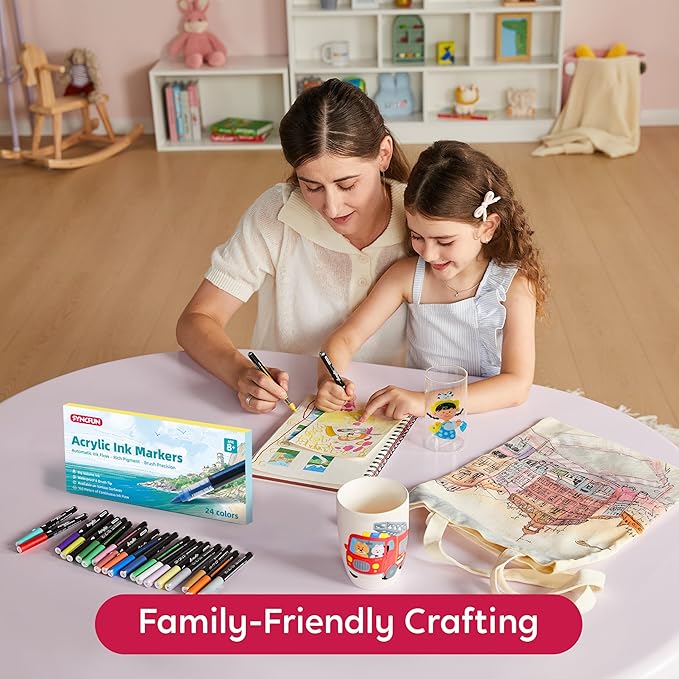 SYNCFUN 24 PCS Acrylic Paint Markers, Brush Tip Markers, Waterproof Paint Coloring Pens for Drawing, Art Supplies & Kids DIY Craft, Fabric, Canvas, Rock Painting, Wood, Glass, Ceramic, Metal