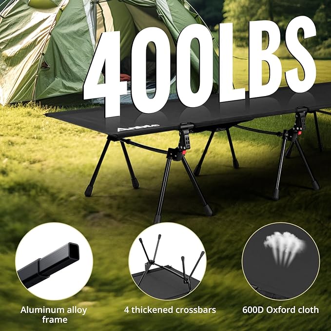 - Supports 400 lbs, Sturdy & Stable: Anbte sleeping cot is constructed with aerospace-grade 7075 aluminum alloy, providing exceptional durability and supporting up to 400 lbs (158 kg). The bed surface is made from 600D Oxford fabric, which is breathable and easy to clean