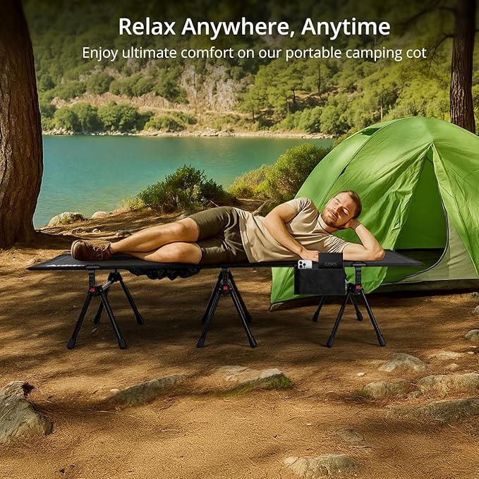 - Versatile Backpacking Cot for Various Occasions: Whether you're camping, hiking, or backpacking, this camping cots for adults is easy to carry and transport. Its lightweight materials and compact folding design make your outdoor adventures more enjoyable and hassle-free