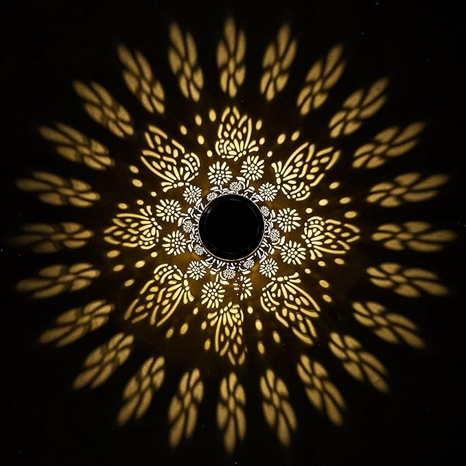 - Exquisite Butterfly & Flower Design: Featuring an intricate hollow pattern with elegant butterflys and blooming flowers, this solar butterfly lantern brings a touch of artistry to your outdoor decor. It emits a soft warm white glow, casting beautiful shadows on the ground—perfect for adding charm to your garden, patio, porch, or balcony.