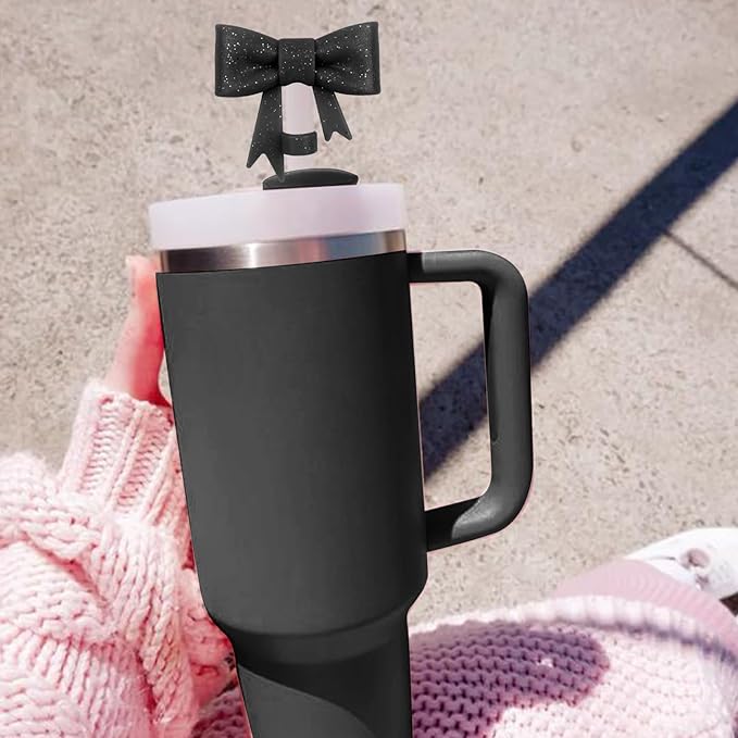- 【Package Includes】: 4 shiny black straw covers. The cute and sweet bow-shaped straw cover makes your cup stand out. Note: This product does not include straws.