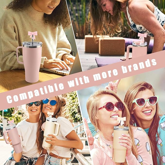 - 【Package Includes】: 4 different colored straw covers, including 2 glitter pink and 2 ivory white. The cute and sweet bow-shaped straw cover makes your cup stand out. Note: This product does not include straws.