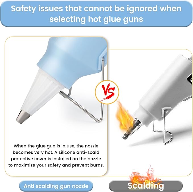 - 【Anti-drip and Heat Resistant】Each glue gun features a designed precision nozzle with upgraded rubber protection to prevent burns and glue waste. The hot glue gun frees the work area from glue nets or other messes. Lacoccinct glue gun adopts a stable metal stand holder and the on and off switch, ensuring your maximum safety