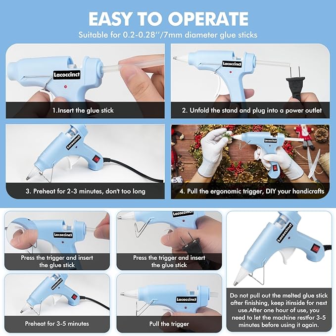 - 【Versatile Applications】The hot glue guns bulk can be applied to long-term use on metal, glass, paper, fabric, cloth, wood, plastic, ceramics and other materials. Perfect craft glue guns for home, office, workplace and other occassions. Whether you're working on packaging, craft projects, DIY repairs, or decorations, Lacoccinct hot melt glue gun is a useful tool that can handle various tasks with ease. Also great for kids making crafts