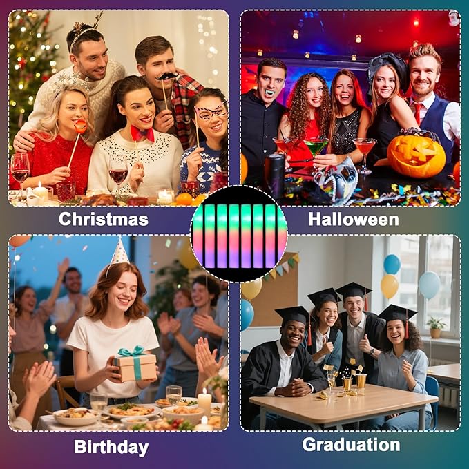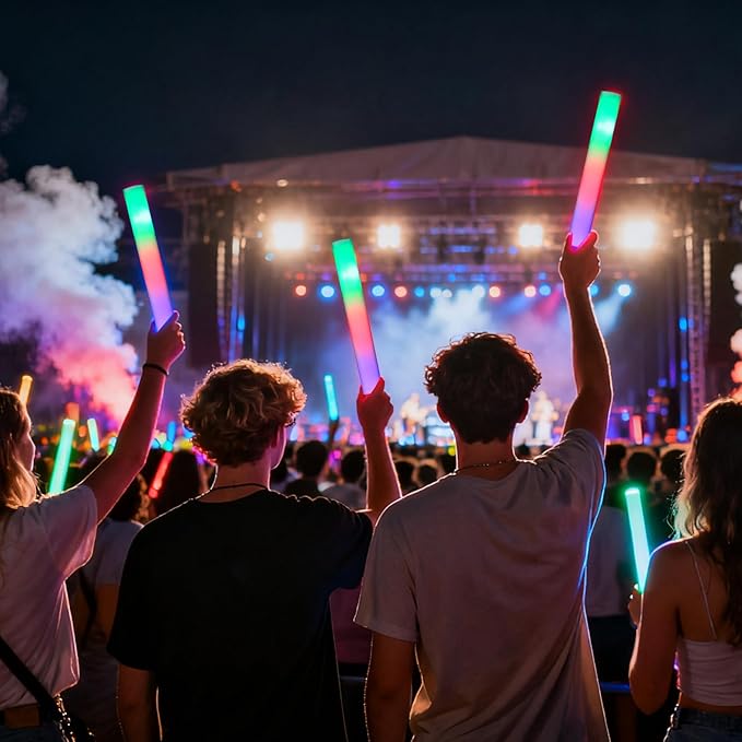 - 【Bright & Festive Ambience】These LED foam sticks bring excitement and color to any gathering. The light sticks for glow party supplies could enhance concerts, weddings, outdoor events, or festive parties, turning ordinary moments into unforgettable light-filled experiences.