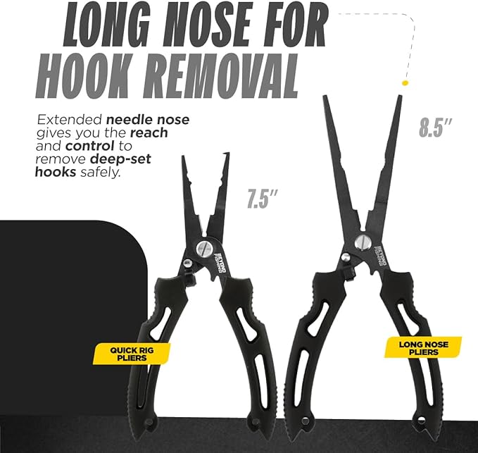 Beyond Fishing QuickRig Fishing Pliers – Multifunction Stainless Steel Split Ring Pliers for Fishing with Line Cutter & Crimper – Corrosion Resistant & Spring Loaded Design