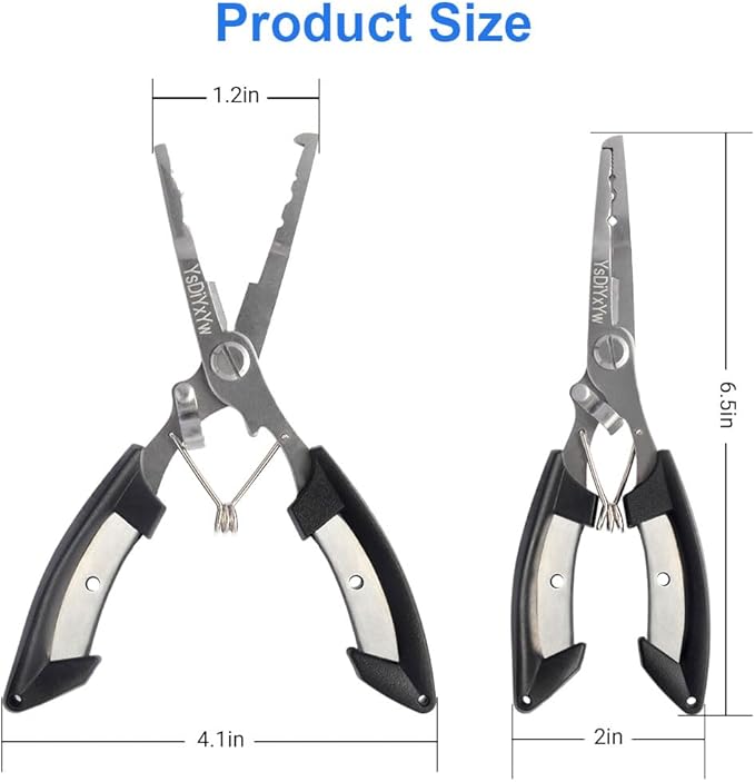 - Compact & Portable: The fishing pliers feature a compact structure and lightweight design for easy carrying. The included fishing lanyard securely fastens the pliers to your body, preventing accidental loss in water