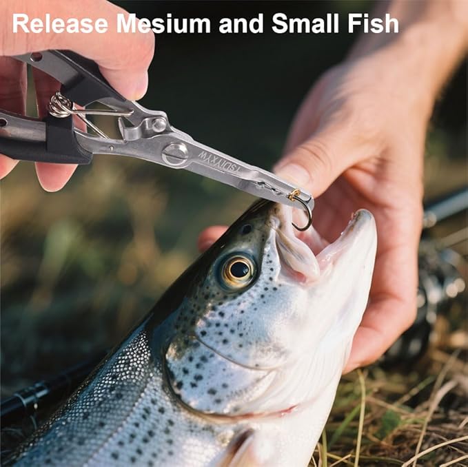 - Multi-functional: These pliers serve as a hook remover, braided line cutter, and fish gripper. They cleanly cut braided, monofilament, fluorocarbon, and other fishing lines