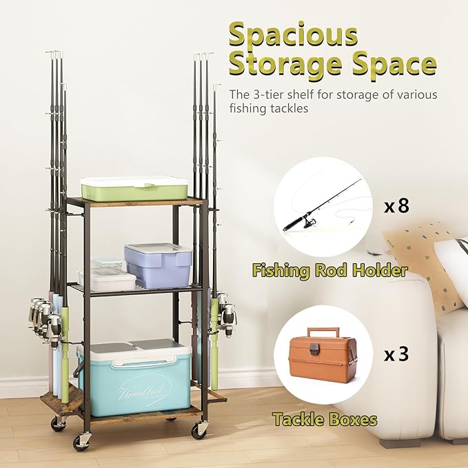 - Effortless Assembly & Efficient Space Use: Set up our Fishing Pole Rack quickly and efficiently, taking just 20 minutes to assemble. Its compact size and straightforward assembly process make it easy to integrate into your space, complete with mobile casters for convenience.
