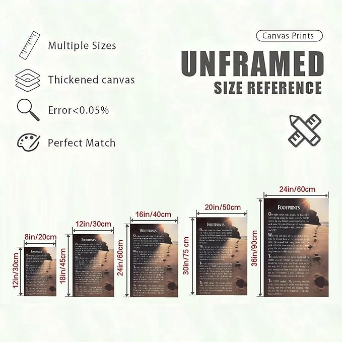 - INSPIRATIONAL DESIGN: Beautiful beach sunset canvas featuring the beloved 'Footprints in the Sand' poem, perfect for spiritual reflection and home decor