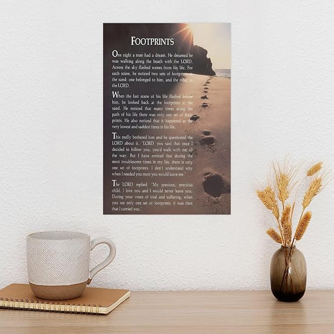 - MEANINGFUL ARTWORK: Combines serene beach imagery with the timeless spiritual message about faith, support, and divine companionship