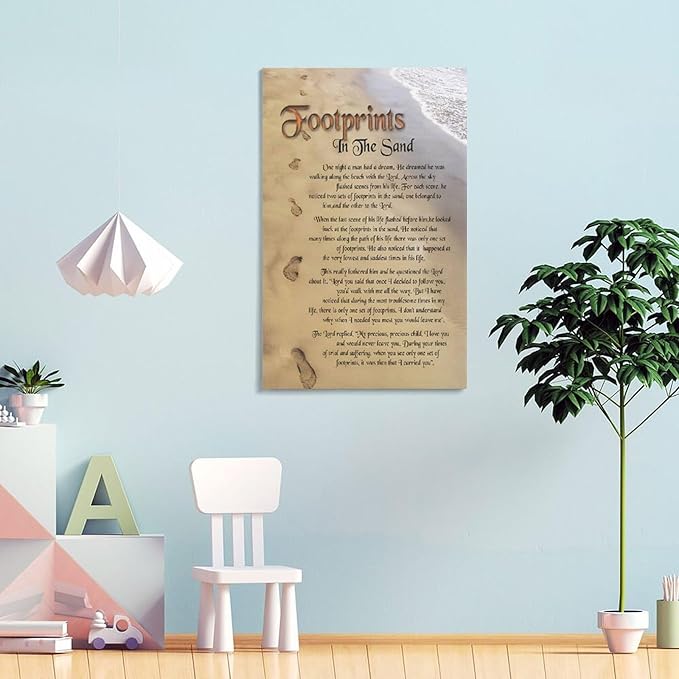 - MEANINGFUL ARTWORK: Combines serene beach imagery with the timeless spiritual message about faith, support, and divine companionship