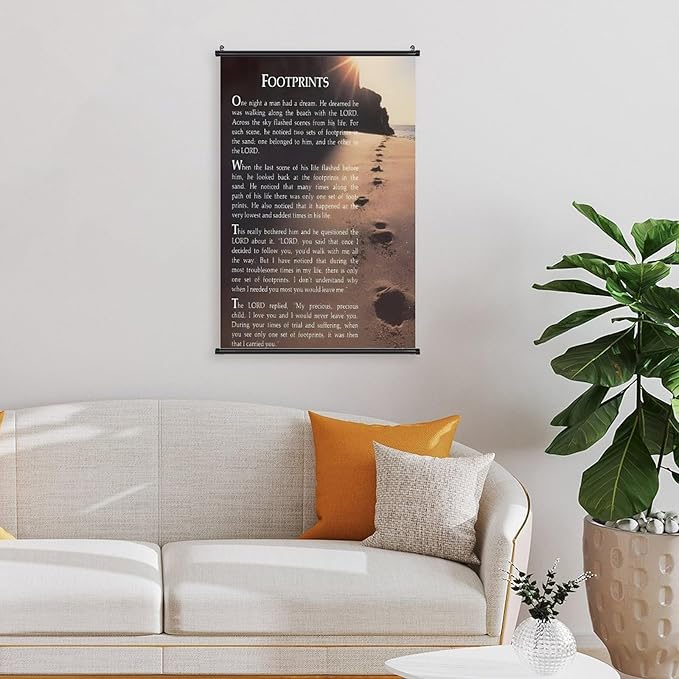 - MEANINGFUL ARTWORK: Combines serene beach imagery with the timeless spiritual message about faith, support, and divine companionship