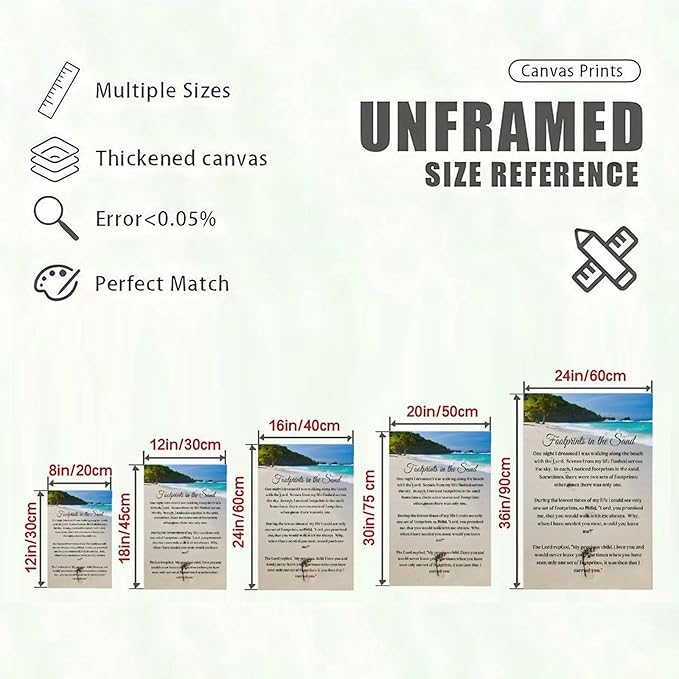 - INSPIRATIONAL DESIGN: Beautiful beach sunset canvas featuring the beloved 'Footprints in the Sand' poem, perfect for spiritual reflection and home decor
