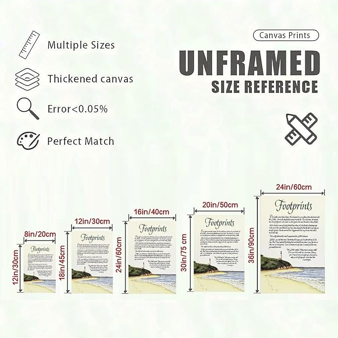 - INSPIRATIONAL DESIGN: Beautiful beach sunset canvas featuring the beloved 'Footprints in the Sand' poem, perfect for spiritual reflection and home decor