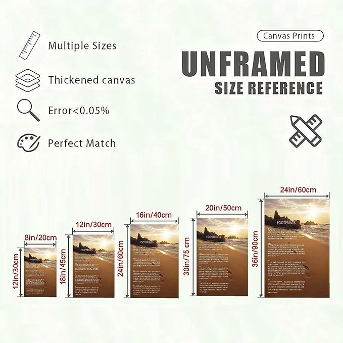 - INSPIRATIONAL DESIGN: Beautiful beach sunset canvas featuring the beloved 'Footprints in the Sand' poem, perfect for spiritual reflection and home decor