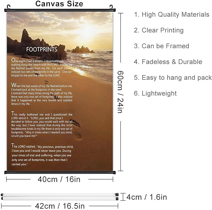 - INSPIRATIONAL DESIGN: Beautiful beach sunset canvas featuring the beloved 'Footprints in the Sand' poem, perfect for spiritual reflection and home decor