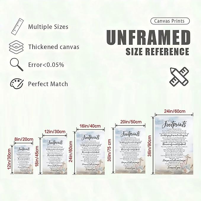 Footprints in the Sand Religious Canvas Wall Art Posters, Inspirational Beach Sunset Poem Print Poster (Unframed 24x36inch, Footprints(6))