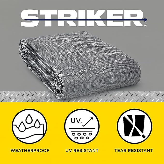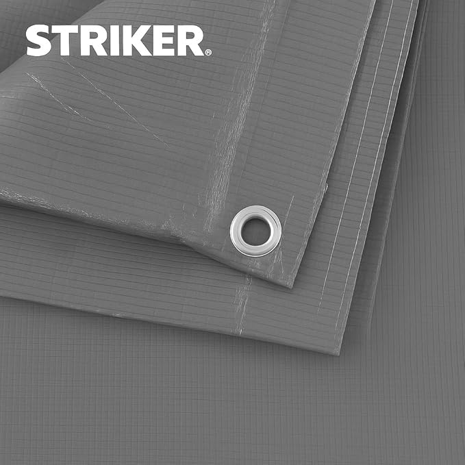 Striker Gray Tarp 20' x 40' - All Purpose PE Cover with UV Protection, 42 Rust-Resistant Grommets, and Rope-Reinforced Edges