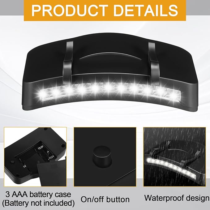 - Ultra Bright: our LED cap light has 11 bright LED bulbs, which can provide max 400 lumens to brighten your dark environment; And there is one click power button for easy on/ off operation, it is easy to operate and use 3 pieces AAA batteries (not included), making the cap headlamp simple to replace; Moreover, with higher brightness and longer life, this clip headlamp can last up to 24 hours of working time