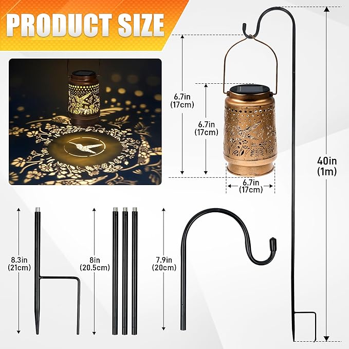 - 【Solar Powered & Automatic Lighting】: This hummingbird solar lantern charges efficiently via sunlight for 8-10 hours and automatically illuminates at dusk, providing 8-10 hours of soft ambient light for your garden, patio, or backyard; an eco-friendly solar lantern outdoor solution with zero electricity cost