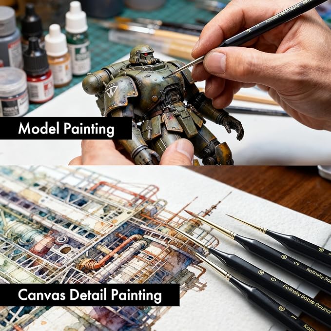 - 【100% Kolinsky Sable Excellence】Crafted with premium 100% natural Kolinsky sable bristles for ultra-smooth flow control, this Master Series brushes maintain sharp precision points after repeated use with acrylics and oils. What’s more, this Kolinsky sable hair also offers stronger absorption for water-based paints like watercolors, effectively preventing blurry detail lines.—Making them the ultimate choice for detail painting and model painting.