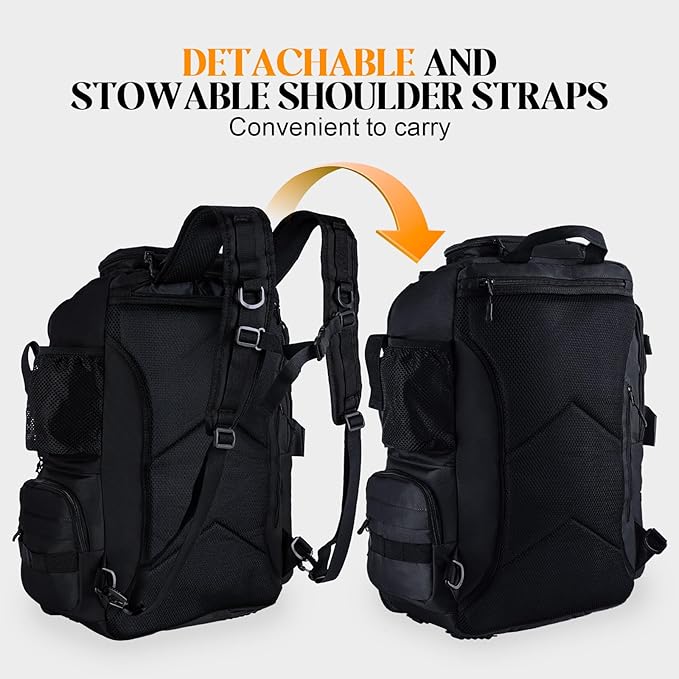- Spacious & Durable Construction - Measuring approximately 18.9" x 13.4" x 9.1", this backpack offers roughly 40L of storage. Made from tear-resistant 900D Oxford fabric, it provides reliable moisture and mold protection. The front panel features breathable perforated design and multiple plastic attachment points for securing extra gear.