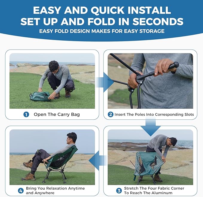 - Perfect for Every Outdoor Adventure: Take this chair anywhere and everywhere! Whether you're backpacking, hiking, or simply relaxing at the beach, the compact, portable design makes it easy to carry in the included carry bag. With durable, tear-resistant Oxford fabric and a breathable nylon mesh seat, this chair is designed to withstand the rigors of outdoor environments, making it your go-to for all kinds of adventures