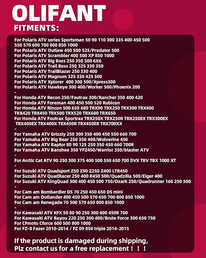 - Wide Application: OLIFANT ATV motorcycle side mirrors compatible with Motorbikes, Dirt Bikes, Quad Bikes, ATVs, GY6 Scooters (including 49cc, 50cc, 70cc, 110cc, 125cc, 150cc models like TaoTao, Wolf, Jonway, ATM50, Roketa, DongFang, Piaggio Fly),Snowmobiles, E-Bikes, and Go-Karts,any 7/8” handle bars.such as Polaris
