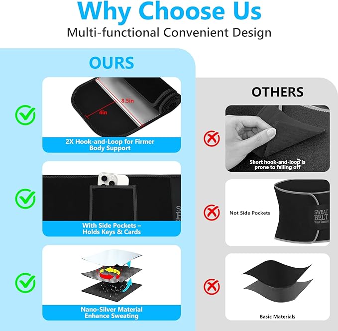 - 【LARGER LONGER FOR CUSTOM FIT】Our waist trainer for women stands out with larger and longer , ensuring a tighter, more secure fit that adapts to different body types—no slipping or adjusting mid-exercise. Available in multiple colors and sizes, this waist trimmer also has a wider coverage area, wrapping your waist and lower belly (perfect for waist trainer for women lower belly fat needs) to keep you focused and comfortable.
