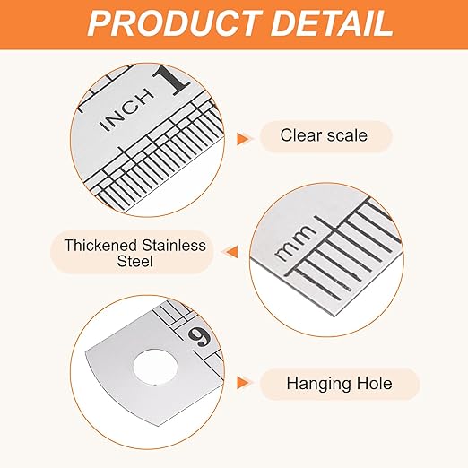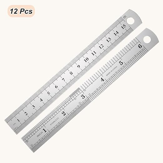 - Size - Length: 15 cm / 5.91 inch; Width: 1.9 cm / 0.75 inch; Thickness: 0.3 mm / 0.01 inch; Minimum Scale Value: 1mm; Color: Silver Tone; Material: Carbon Steel; Packing List: 12 Pcs x Machinist Metal Ruler