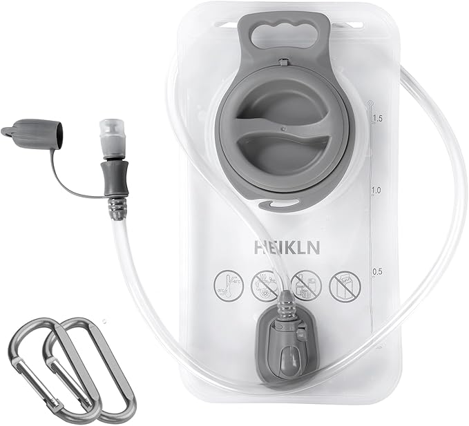 - LARGE OPENING EASY TO CLEAN: HEIKLN 1.5L hydration bladder has one of wide opening, It makes for easy pouring of water. It is also large enough for your hand or brush to clean the hydration bladder, The 3.5”screw on cap goes on and off easily. For cold water, simply add ice cubes directly from a scoop or refrigerator ice dispenser. and best of all it has insulation that allows the water to resist quick temperature change.