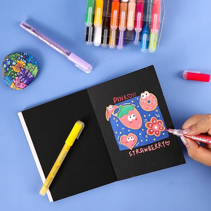 Grabie Acrylic Paint Pens Markers, 18 Colors, 0.7 mm, Extra Fine Tip Drawing Markers, Premium Paint Pens for Painting on Various Surface, Art Supplies