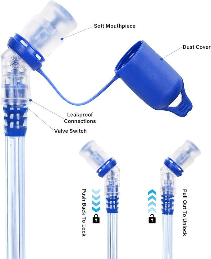 - Upgraded Leak-Proof Water Bladder:Well-sealing water storage Reservoir ensuring a leak-proof experience for all your outdoor adventures.The hydration pack bladder is made of high quality food grade material,it won't leave a bad taste in your drink.The bladder bags also has a dust cover to keep dirt out.The 2L water bladder has passed the air pressure test and is completely pressure-resistant and leak-proof