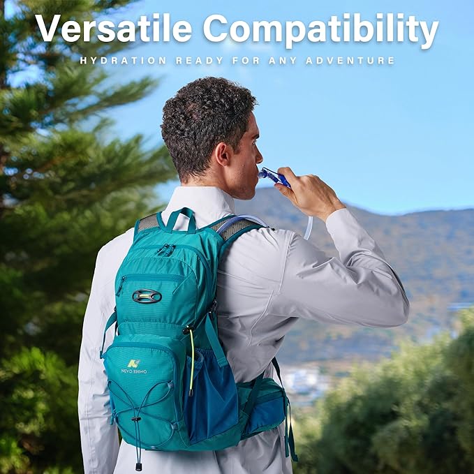- Durable Hydration Bladder:The N NEVO RHINO Hydration Bladder is crafted with high-quality materials,package includes 2L hydration bladder,water bladder cleaning kit,2 pieces tube fixed clips,1 pieces hanging clips.Ensuring a leak-proof performance that makes it perfect for all outdoor adventures,including hiking,camping,and cycling
