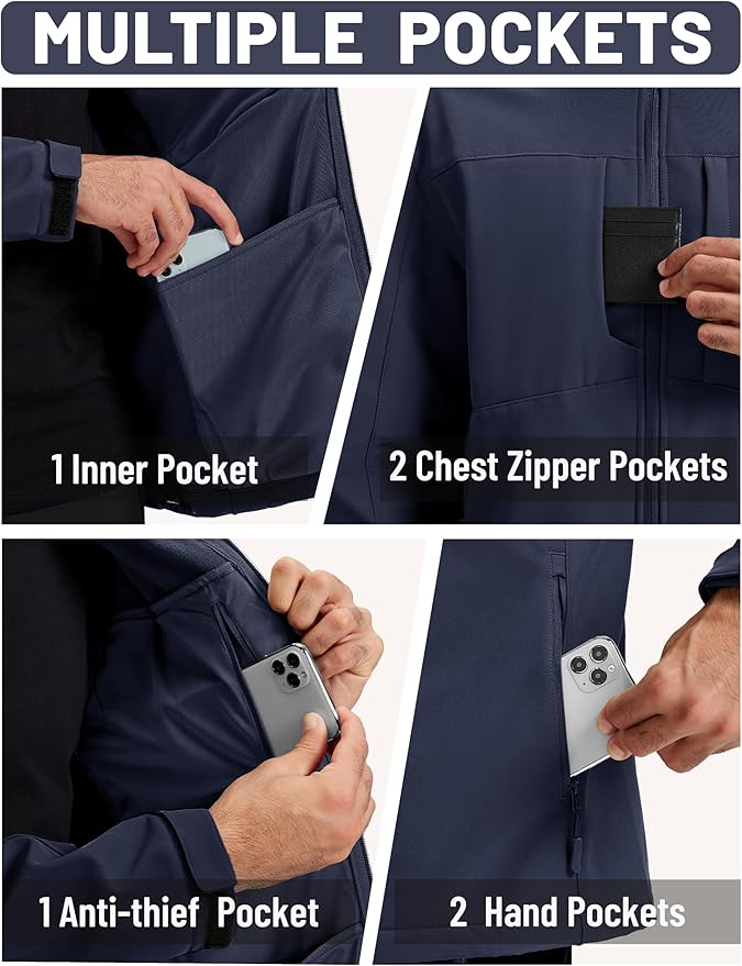 - 【6 Practical Utility Pockets】This performance jacket has 2 side zipper pockets, 2 chest pockets and 2 internal pockets, suitable for accommodating phone, wallet, card, and other accessories for various scenarios