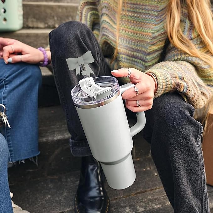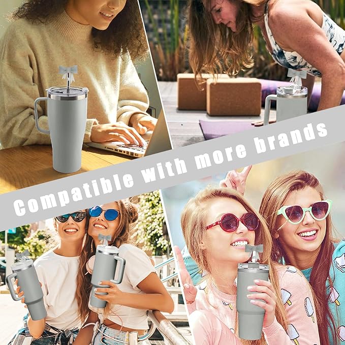 - Package Includes】: 4 gray straw covers. The cute and sweet bow-shaped straw cover makes your cup stand out. Note: This product does not include straws.