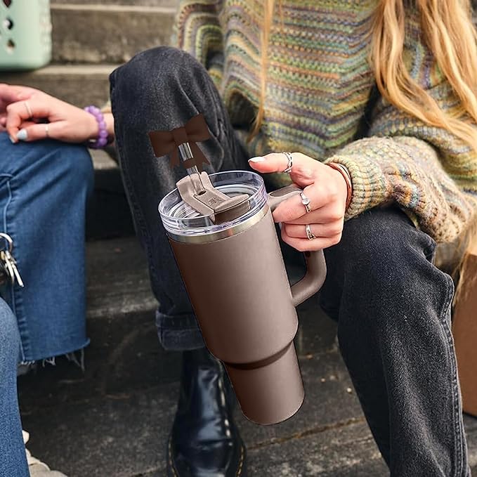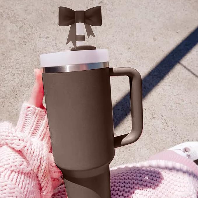 4Pcs Silicone Straw Toppers Covers for Stanley Cups 40/30oz 10mm(0.4in) Chocolate Dust-Proof Bow Straw Covers Toppers Suitbale for Stanley Cup Accessories Reusable Straws Caps