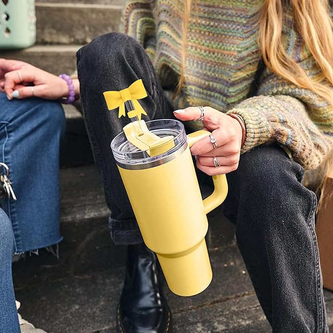 4Pcs Silicone Straw Toppers Covers for Stanley Cups 40/30oz 10mm(0.4in) Lemon Yellow Dust-Proof Bow Straw Covers Toppers Suitbale for Stanley Cup Accessories Reusable Straws Caps