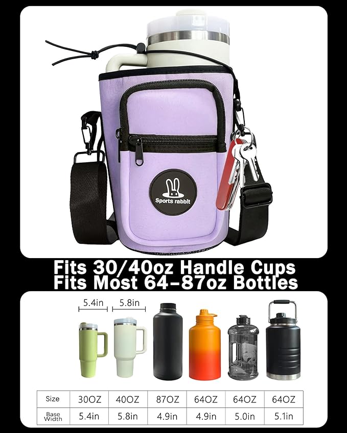 Sports rabbit Universal Water Bottle Holder – Durable Oxford & Neoprene Hybrid Design Compatible with Stanley 30/40oz Handled & 64/87oz Straight Tumblers, Adjustable Strap for Gym, Travel, Outdoors