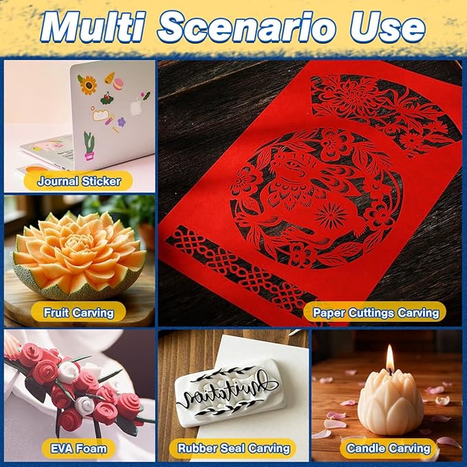 - 【Durable Cutting Mat for Stable Creation】The included cutting mat is crafted from high-quality PVC, boasting great durability & reliability. Its surface undergoes treatment, withstanding repeated cuts without obvious scratches or marks. It also has non-stick properties to resist wear and extend service. With a stable structure, it provides a flat crafting platform, maintaining steady support for repeated cutting or precision carving, ensuring each operation’s accuracy.
