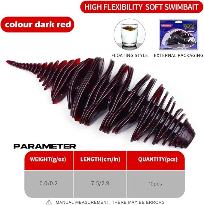 - Unique Ribbing Design: The soft plastic fishing lures with ribbed body from head to tail to create mouthwatering action. These ribs in shape that's the key it gives lots of action. The design has great traction, the durability of soft plastic move more water and create more waves from water displacement, to make more action underwater and invite to nearby fish.